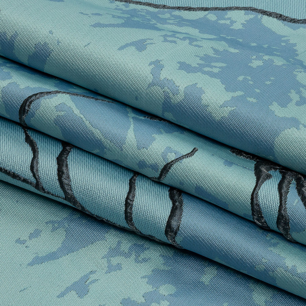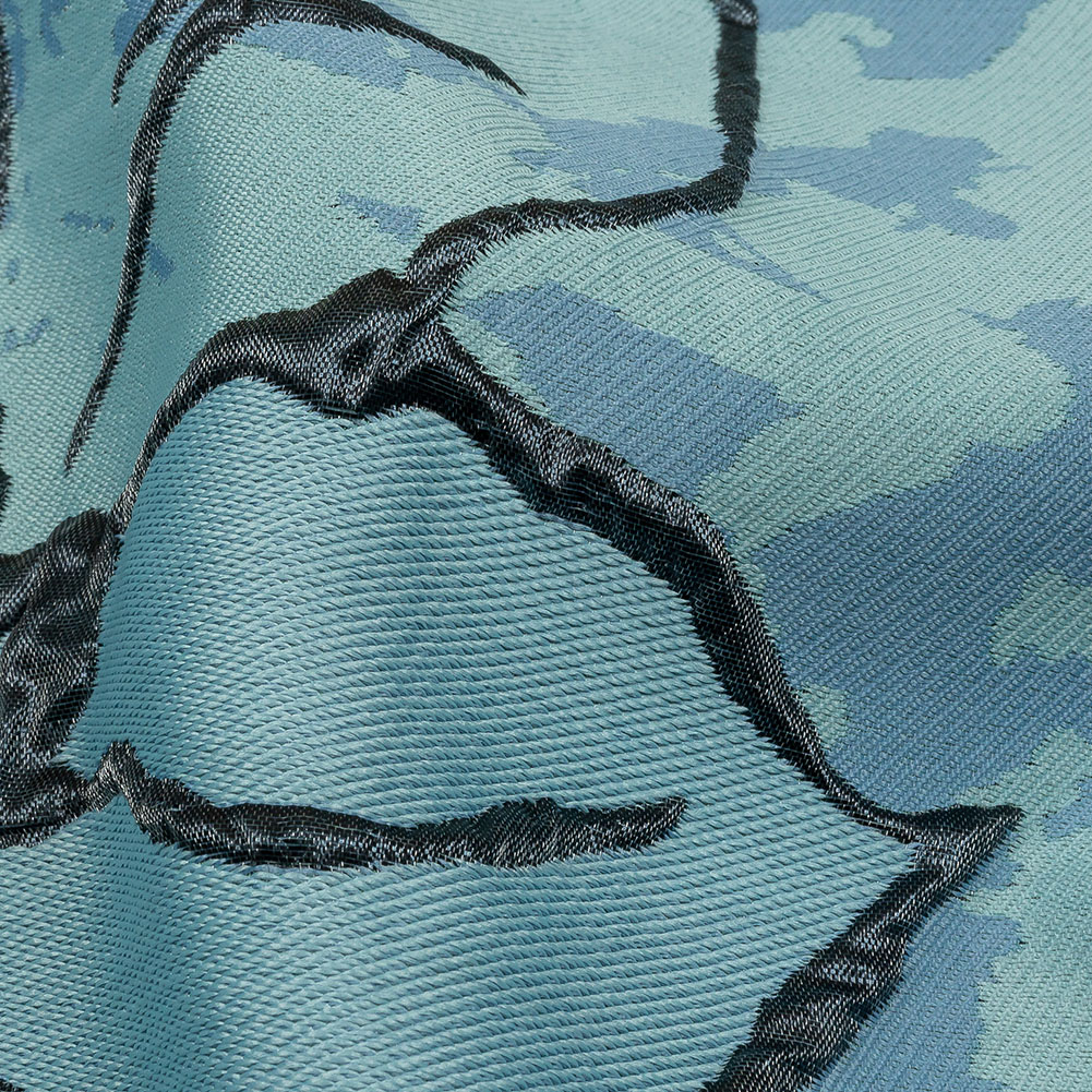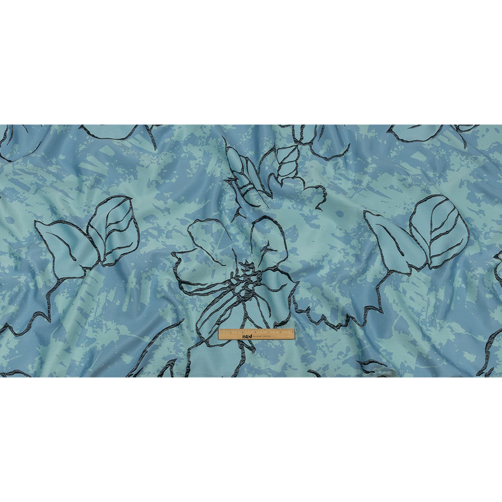 Fusing serene blue with edgy gray metallics, Mood’s Metallic Gunmetal and Blue Mottled Floral Outlines Luxury Brocade is a rock star’s dream! A mottled background of light blue shades is interrupted by raised, metallic gunmetal gray floral outlines.