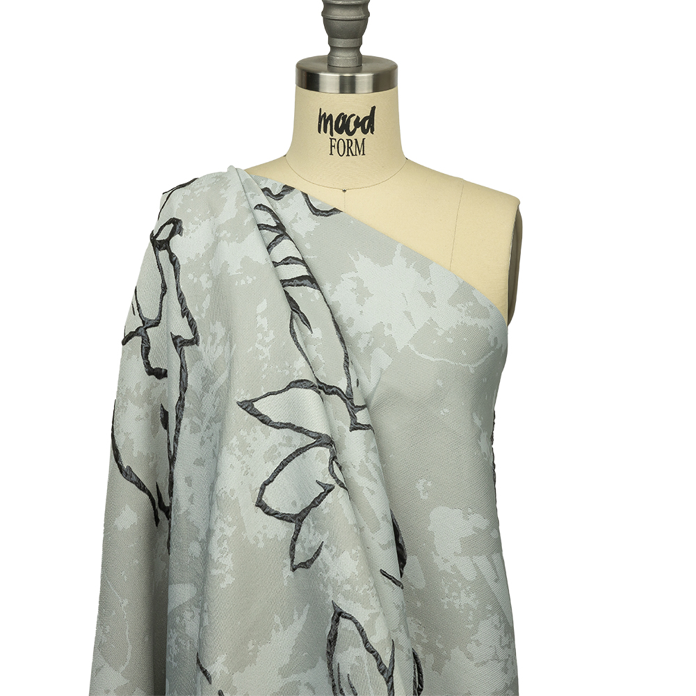 Stately, sumptuous, and a little daring, Mood's Metallic Gunmetal and Light Gray Mottled Floral Outlines Luxury Brocade is undeniably enchanting! A mottled background of light gray shades is interrupted by raised, metallic gunmetal gray floral outlines. Soft in hand with the occasional coarse, raised texture, the drape is pliable and structural, perfect for daring eveningwear. We picture dramatic ballgowns, cocktail dresses, and jumpsuits, or even trousers and bomber jackets to add an upscale touch to your everyday wardrobe. Opaque, a lining may be desired to protect finished products from fraying at the seams but is not strictly required.