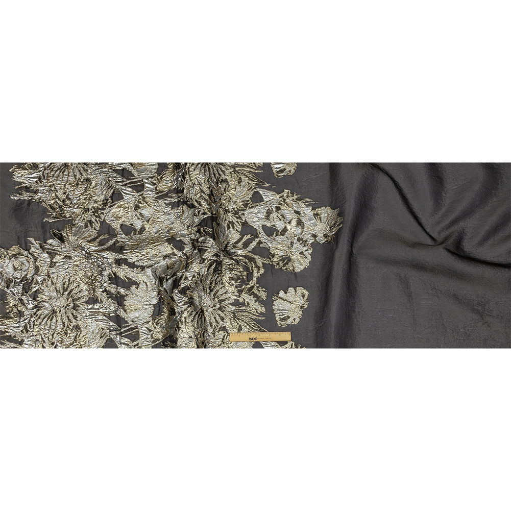 Metallic Ice Flow, Gold and Gunpowder Flashy Flowers Luxury Burnout Brocade