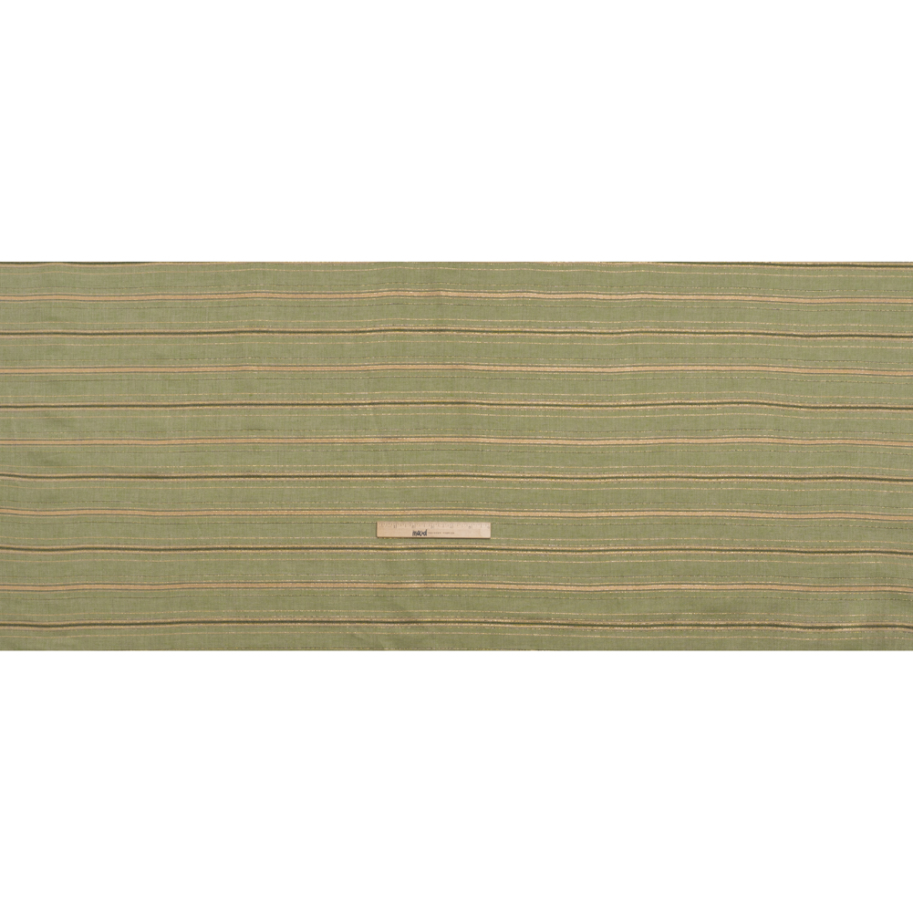 Metallic Linen Twill – Gold, Pesto Green and Beige Railroaded Stripes