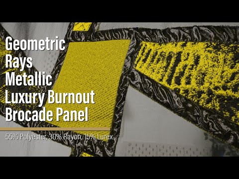 Let your creativity adventure outside the lines with this Olive Green and Black Geometric Rays Metallic Luxury Burnout Brocade Panel, featuring a tactile, grainy hand and semi-structured drape.Suggested Projects: Overlays for Gowns, Skirts, JacketsContent: 55% Polyester, 30% Rayon, 15% LurexStretch: NoneOpacity: SheerOlive green and black geometric brocade rays beam across a sheer, black burnout. Tactile and grainy in hand and with a semi-structured drape, use this large panel brocade to craft overlays for billowing gowns, voluminous skirts, and other eye-catching eveningwear. Please Note: This panel measures 62” by 54”.