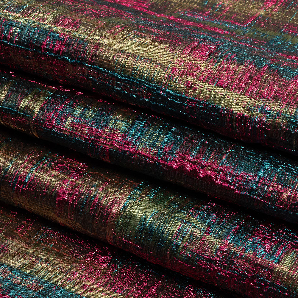 Metallic Magenta, Forest and Olive Distressed Plaid Luxury Brocade