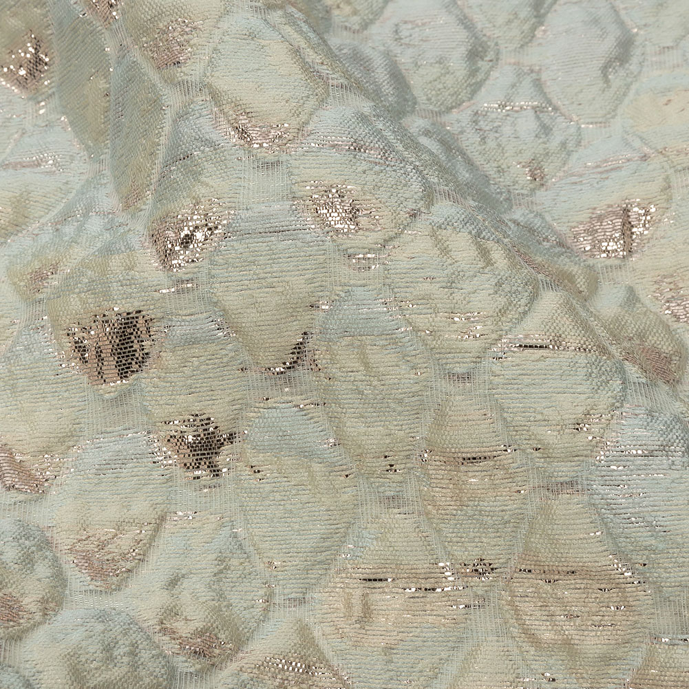 Metallic Pastel Blue and Gold Abstracted Scales Luxury Brocade
