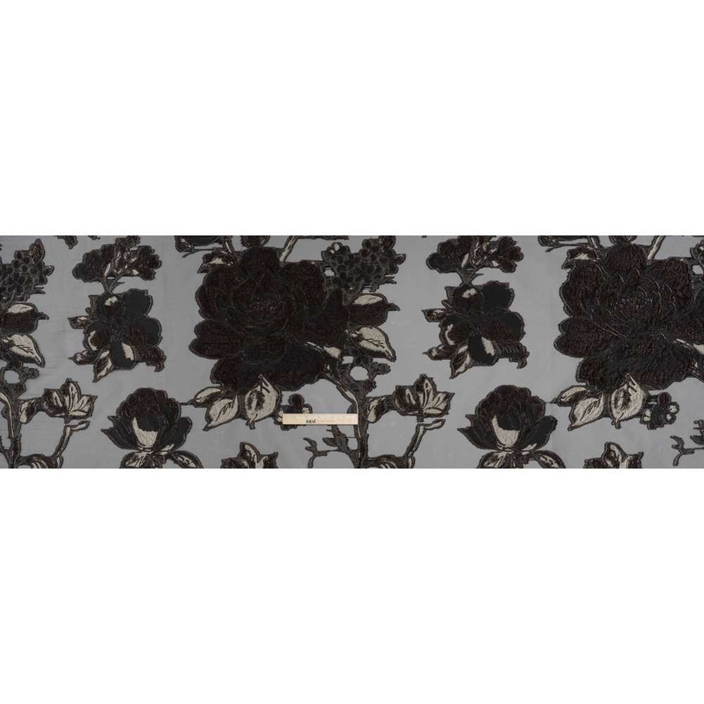 Metallic Polyester and Acetate Burnout Brocade - Beige, Dark Brown and Black Rose Garden