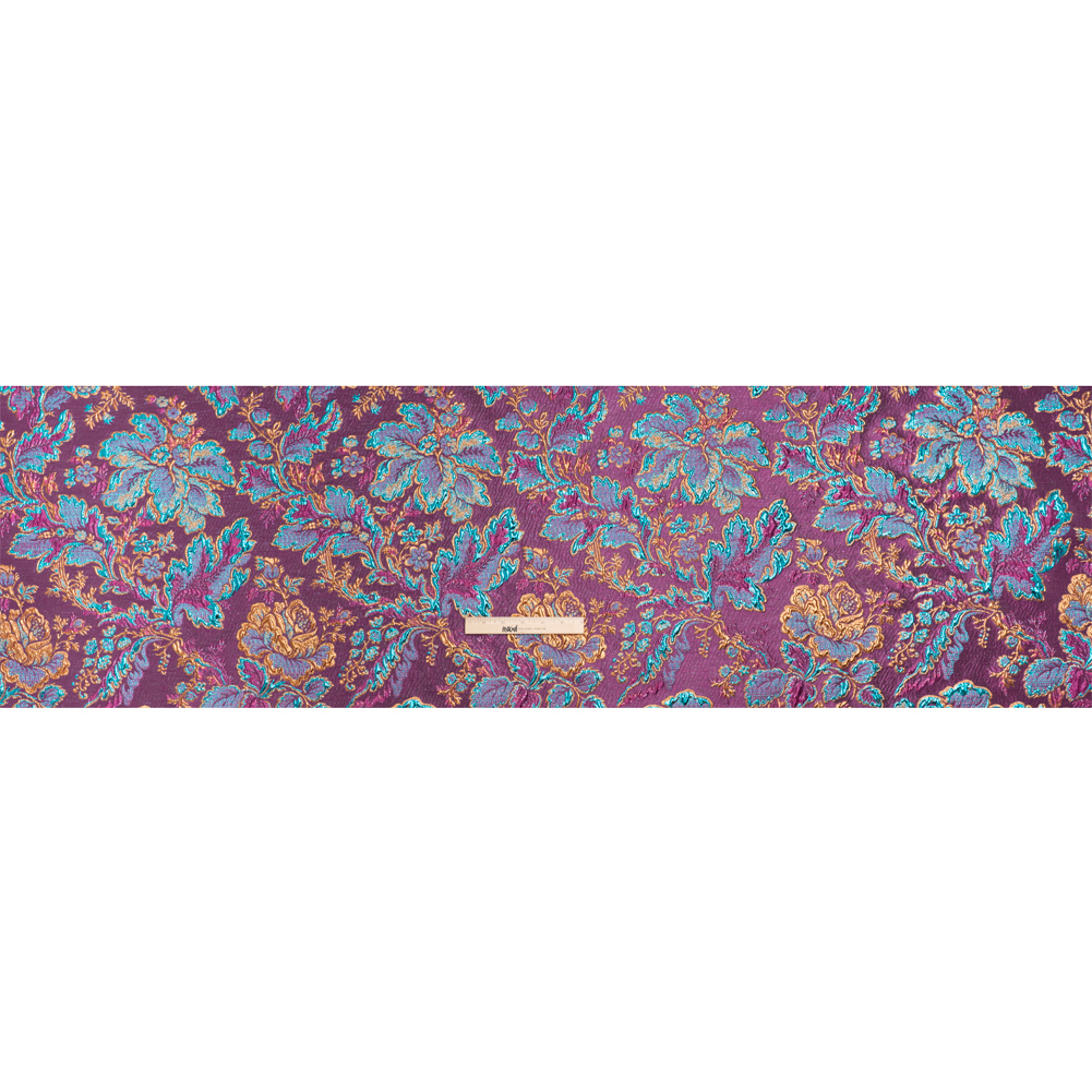 Metallic Purple, Teal and Gold Floral Delight Luxury Brocade