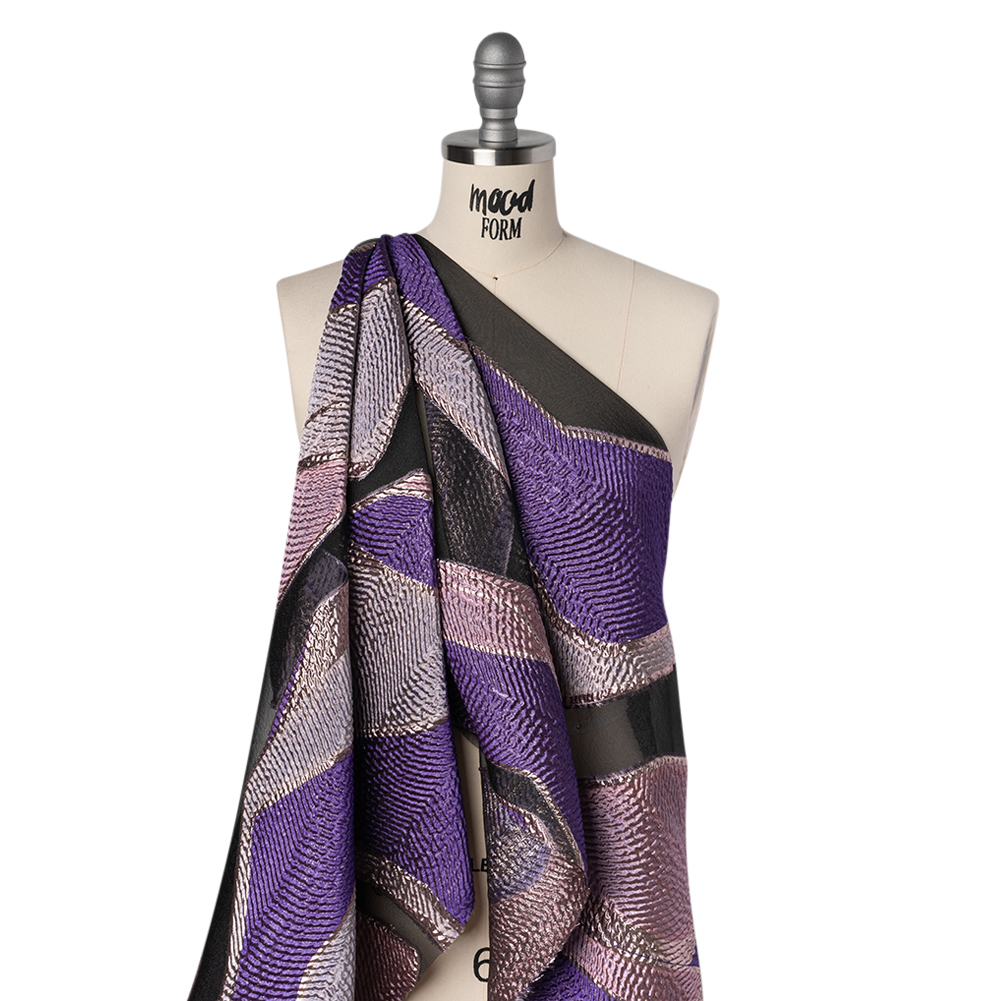 Follow the lead of your intuition and stitch show-stopping designs out of this Orchid Soft Geometric Abstract Metallic Rayon and Polyester Burnout Brocade—featuring a sleek hand and slightly structured drape.