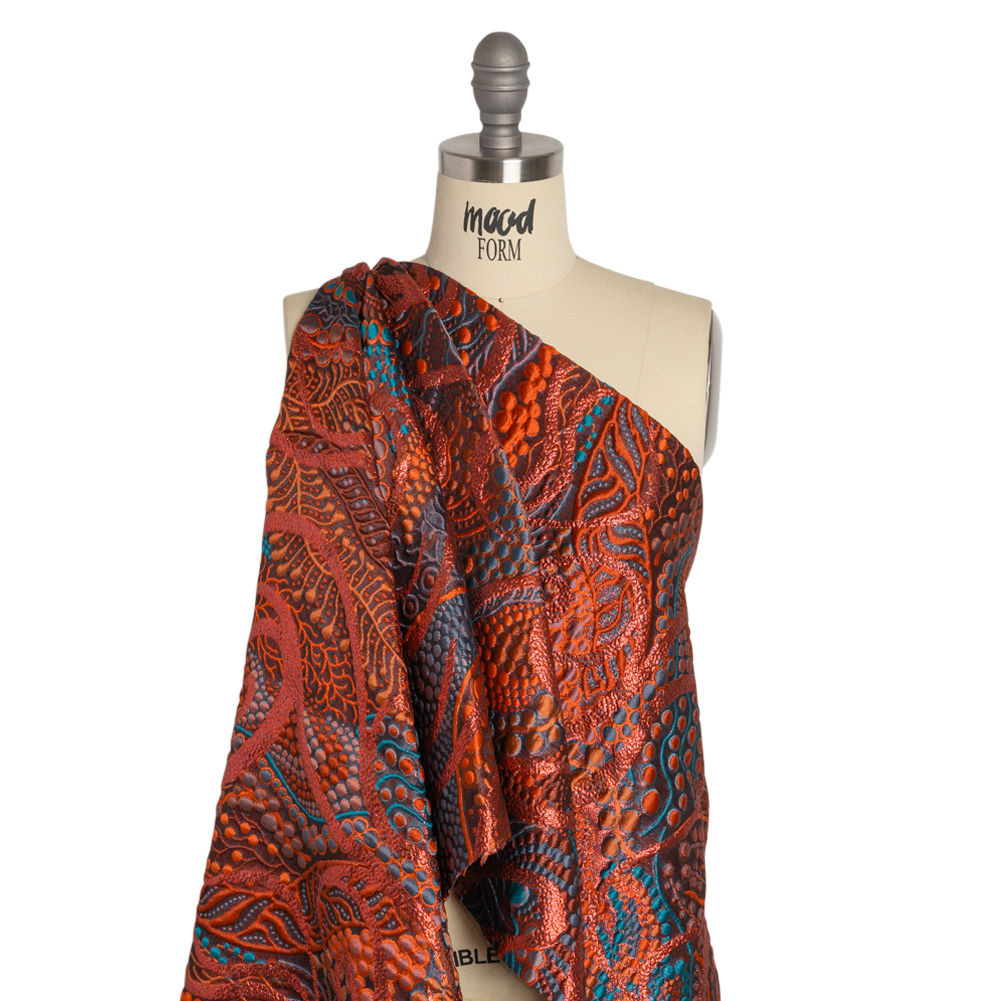 Metallic Red, Burnt Orange and Navy Organic Flow Luxury Brocade