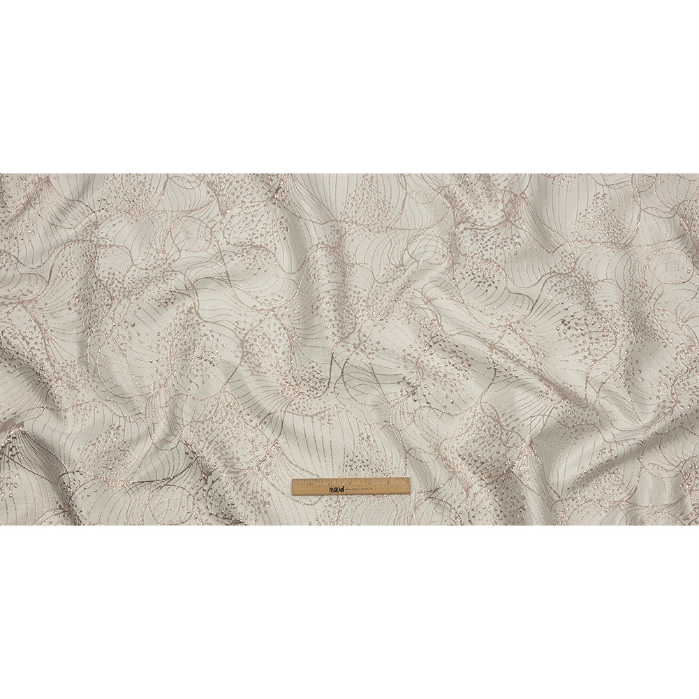 Metallic Rose Gold and Ivory Lines and Dots Luxury Brocade