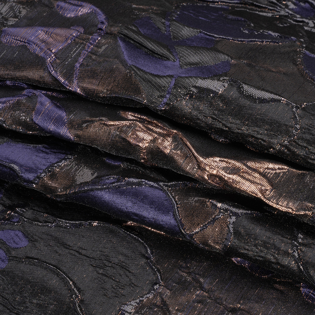 Metallic Rose Gold, Black and Navy Floral Luxury Brocade