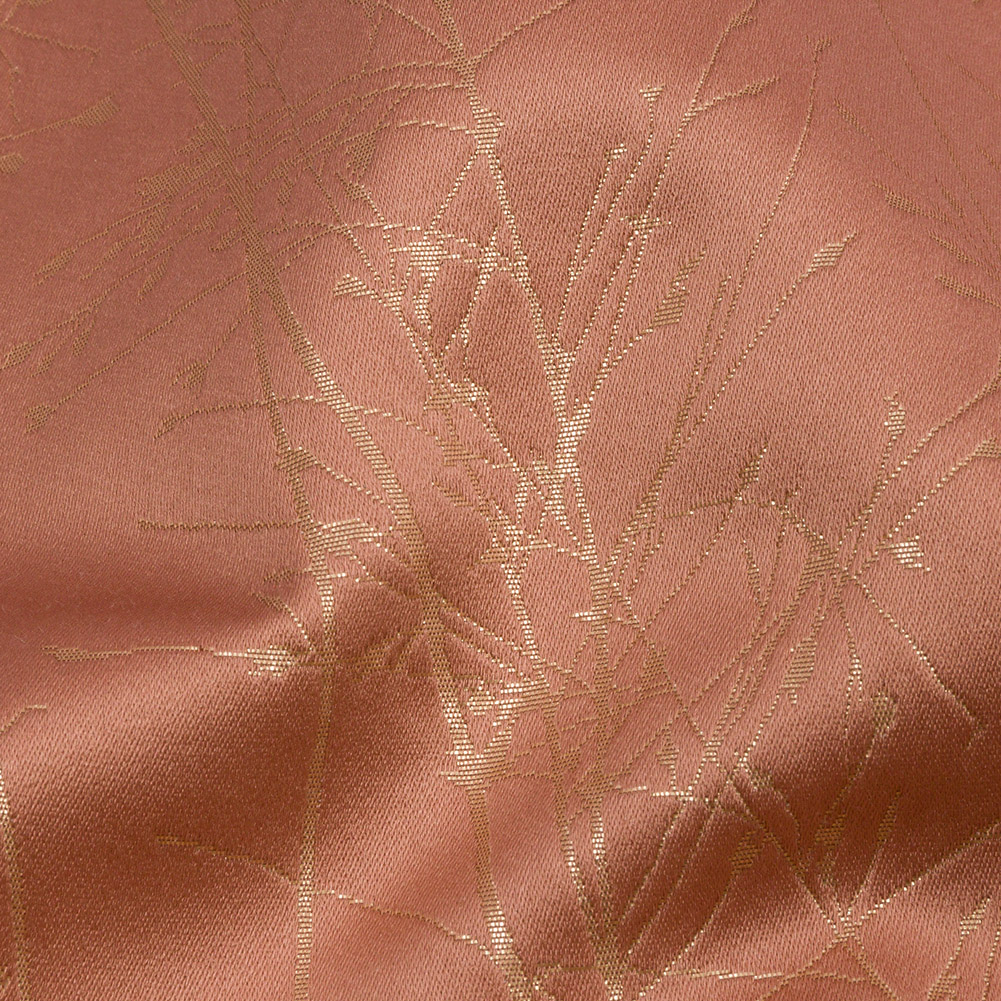 Subtle and stunning; soften any room with this British Imported Shell Delicate Grasses Metallic Satin-Faced Drapery Jacquard. At the edge of a forest, thinning golden grasses shine against a lustrous dusty pink background. The Jacquard weave structure paired with the added satin base give the face a tactical but smooth feel. With a flexible drape and no stretch, create dramatic drapes, long, pooling curtains, elegant swags, valances, or even light upholstery projects like throw pillows and seats. Mostly opaque, a lining can be added to lessen sun exposure but is not needed for most projects.
