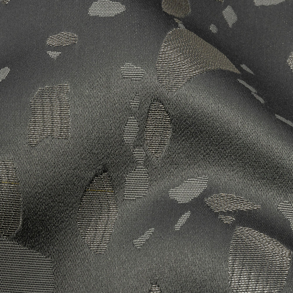 When the sky is gray, you'll find this British Imported Slate Pebbles Satin Faced Metallic Drapery Jacquard lights up a room. On a luminous, satin-like stormy gray ground, silver and light gray abstract shapes appear like pebbles on the beach, offering a mix of textures—smooth and raised—for undeniable appeal. With a flexible drape, design dramatic full-length curtains with elegant swags, simple draperies, or refined valances. Opaque on its own, a drapery lining may be added for use in high-sun windows, to lessen potential sun damage.
