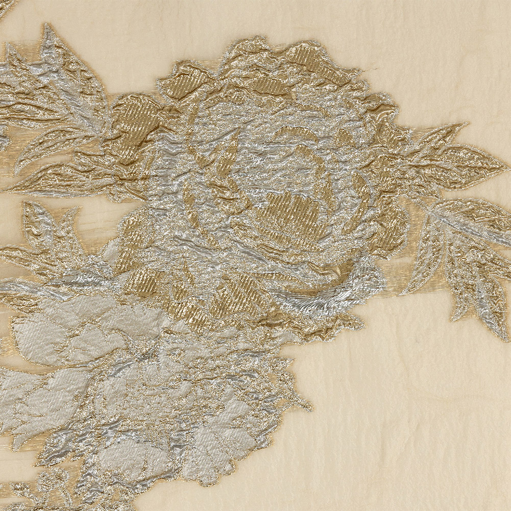Metallic Silver and Beige Floral Luxury Burnout Brocade