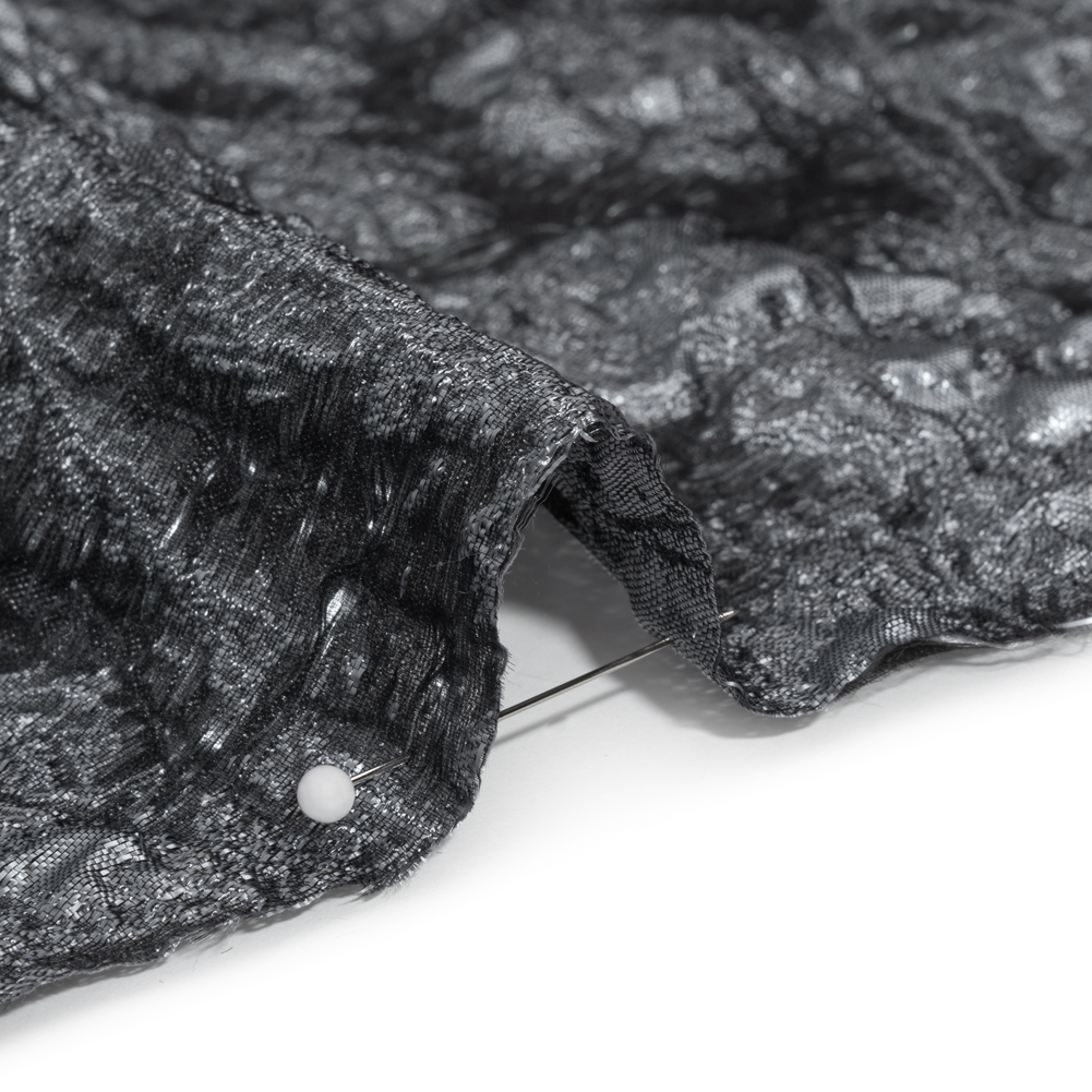 From formalwear to couture costumes, this Metallic Silver and Gray Abstract Luxury Brocade is a luxurious experience in high-class texture. The complex weave of a brocade creates a three-dimensional face that is sure to turn heads. Metallic platinum and matte black areas bubble and ripple sporadically, yielding a grainy hand and a captivating luster. Supple and lightweight, this fabric brings movement and volume to your formal gowns, skirts, and jackets. Look to pair with our silk/habotai linings for an extra boost of luxury!