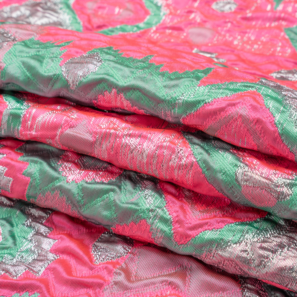 Metallic Silver, Hot Pink and Sea Green Diamond Skies Luxury Brocade