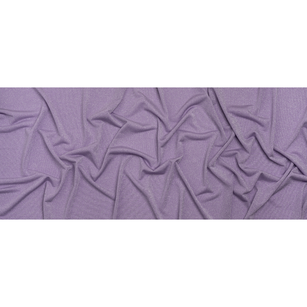 This Lavender and Silver Metallic Stretch Rayon Jersey is a bundle of relaxation—featuring a soft, tactile hand and fluid drape.Suggested Projects: Dresses, Skirts, Pants, ShirtsContent: 60% Rayon, 20% Lurex, 15% Polyester, 5% ElastaneStretch: 50% WeftwiseOpacity: TranslucentLavender and silver threads gleam atop this jersey with a metallic finish. Soft yet slightly tactile, it features a 50% stretch through the weft and fluid drape. From glamorous everyday looks to sparkling special occasions, this fabric makes stunning bodycon dresses, flowing floor-length gowns, skirts (mini, maxi, and everything in between), flared leggings with matching lightweight full-zip jackets, and more! Translucent, we recommend layering over camis or slips.
