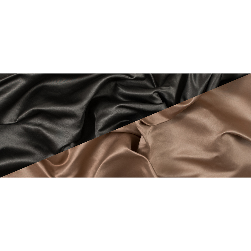 Imagine a perfect night in a stunning dress made out of this Two-Tone Double Duchesse Satin. With a lusciously smooth hand and a luminous face, create evening wear pieces that will surely be the center of attention. Somewhat thicker and with a medium weight, its stiffness creates a durability that is perfect for the addition of beading, sequins and appliques for additional luxury. A fuller drape is provided giving volume to ball gowns as you glide across the floor. Opaque, a lining is optional depending on its application. This collection features eight color combinations, so you are sure to find the best one for your project!
