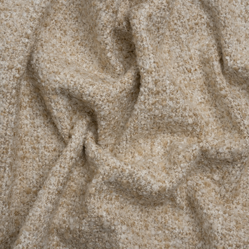 Snuggle up to this Mineral Pebbly Upholstery Boucle, featuring a white and beige face with a pebbly hand and a dense feel.