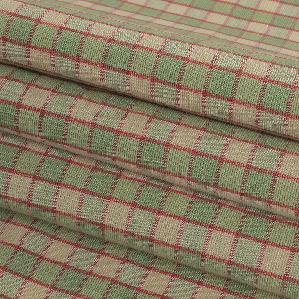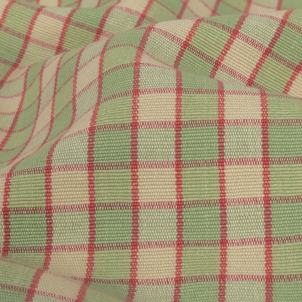 Mint Green and Red Checked Handwoven Cotton