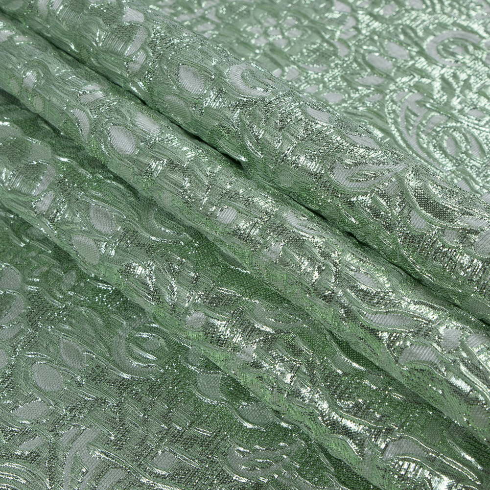 Mint Metallic Floral Brocade