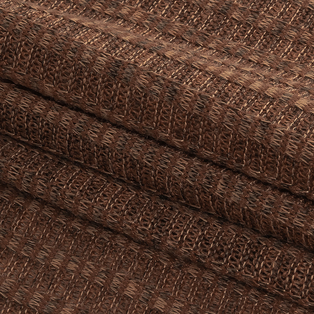 More and more designers are gearing their lines towards comfortable basics. Get the look with this Mocha Ribbed Sweater Knit. A ribbed design mixes with a heathered look to provide both texture and visual appeal. Light and airy, add layered pieces to your fall/winter collection or light cover-ups for those spring/summer nights. A stretch through the weft and a flowing drape makes this knit ideal for waterfall tops, shrugs and cardigans. Thin, it is translucent due to the gauge.