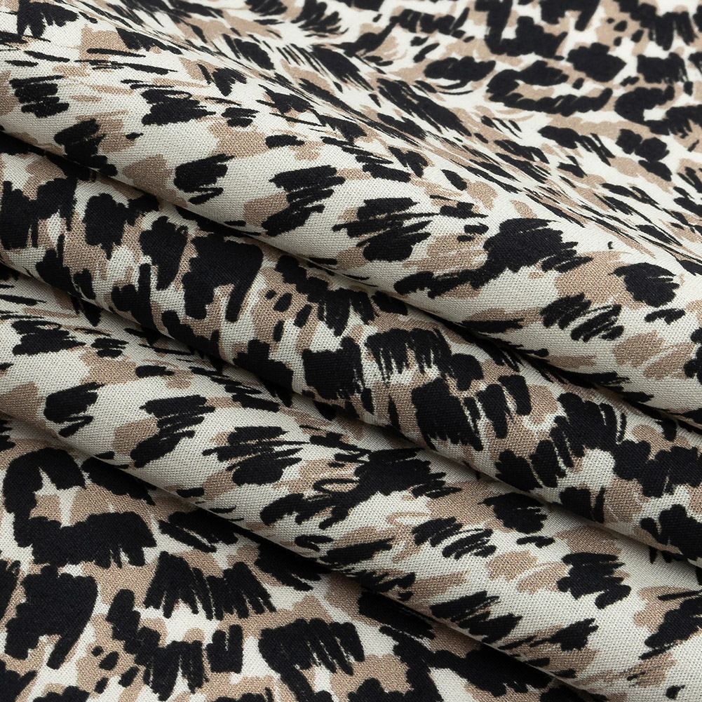 When real fur isn’t the choice for you, our Mood Exclusive Beige Fanciful Furs Cotton Poplin begs to be considered with its spotted taupe and black fur-texture print.