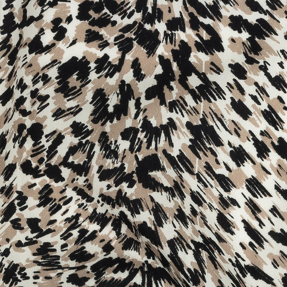 When real fur isn't the choice for you, our Mood Exclusive Beige Fanciful Furs Cotton Poplin begs to be considered with its spotted taupe and black fur-texture print. Crisp and cool in hand, this poplin features a fluttering drape. With no stretch, be sure to add ease while you create expertly tailored shirts and blouses, easy shirt dresses, and lightweight skirts. A lining is recommended for a polished finish and opacity with this slightly translucent material.