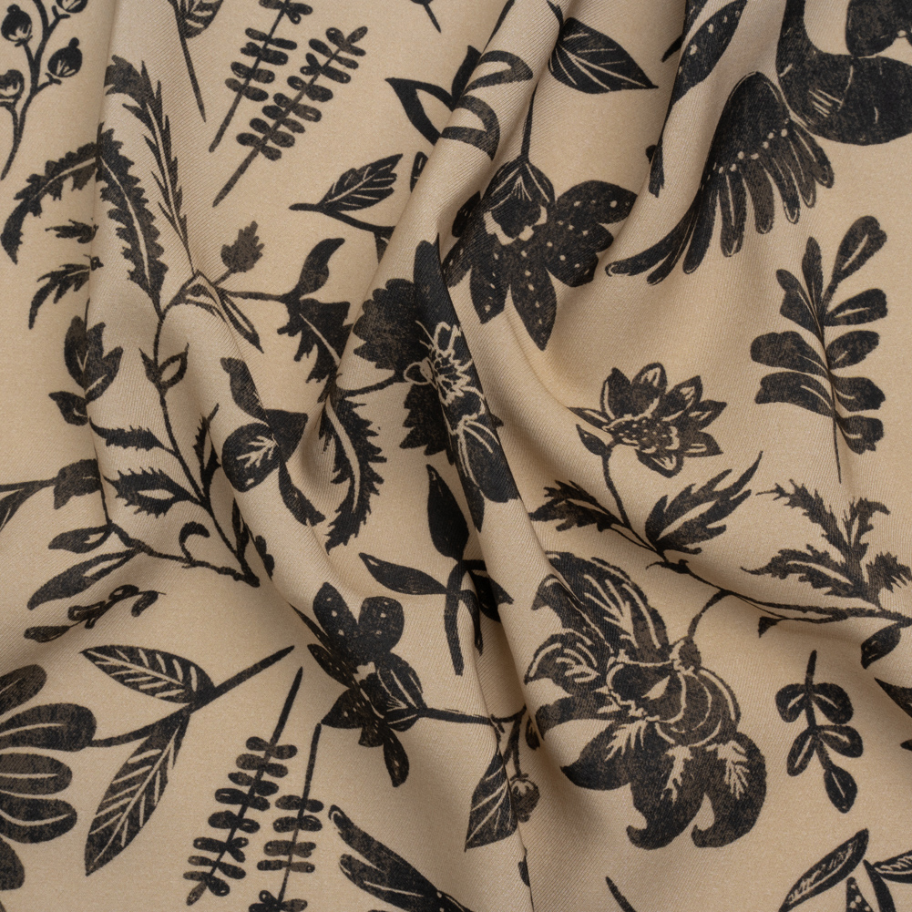 Mood Exclusive Beige Pheonix Flowers Sustainable Viscose and Polyester Twill