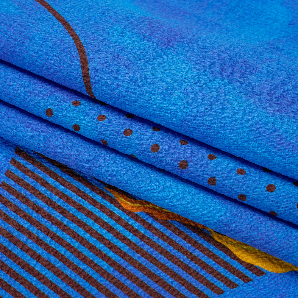 Mood Exclusive Blue Calligraph Creator Stretch Polyester Seersucker