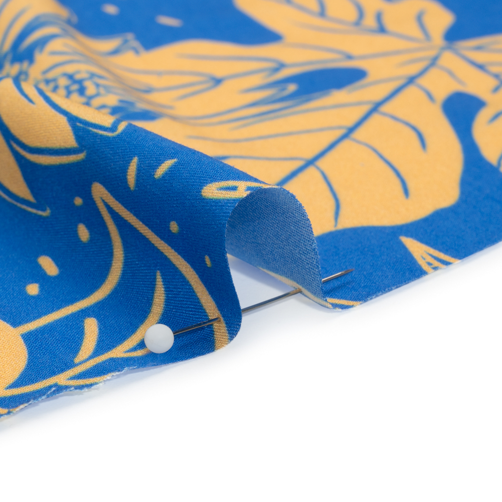 With your feet in the cold soil and the bees buzzing through the air, feel connected with nature with our Mood Exclusive Blue Your Solar Self Viscose Twill. Figs, grapes, and sunflowers grow in the drowsy light of the Tuscan sun, coloring the face in blue and amber. This 100% viscose fabric features a smooth face, lightweight drape, and cool hand, resting comfortably on your skin as it follows your daily movements with a graceful fluidity. Casual and semi-casual looks are instantly elevated by its crisp look, inspiring sewing projects like airy blouses, button-ups, palazzo pants, and more. Translucent, a lining may be desired.