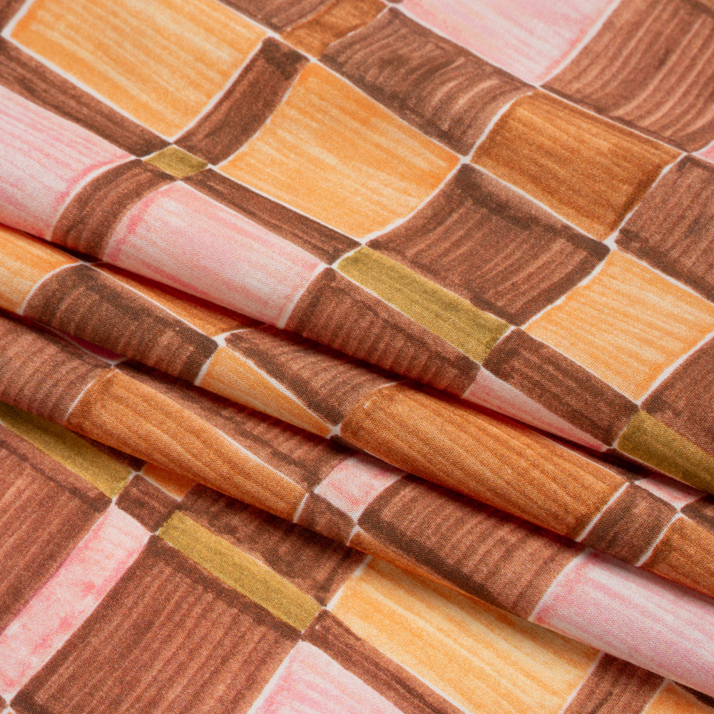 Inspired by the grid of city streets, our Mood Exclusive Brown City Blocked Cotton Poplin plays up the many pathways—free and blocked—that you must traverse to reach your destination. A chic addition to The Metro Collection, this fabric displays a sprawling neighborhood of brown, green, and pink rectangles and squares. Thanks to the 100% cotton content, the hand is dry and the drape is crisp. The lightweight and cool feel is excellent for shirting; boxy cropped tops, button-ups, and shirt dresses are just the beginning of what you can create with this fabric! As it is semi-translucent, a lining may be desired.