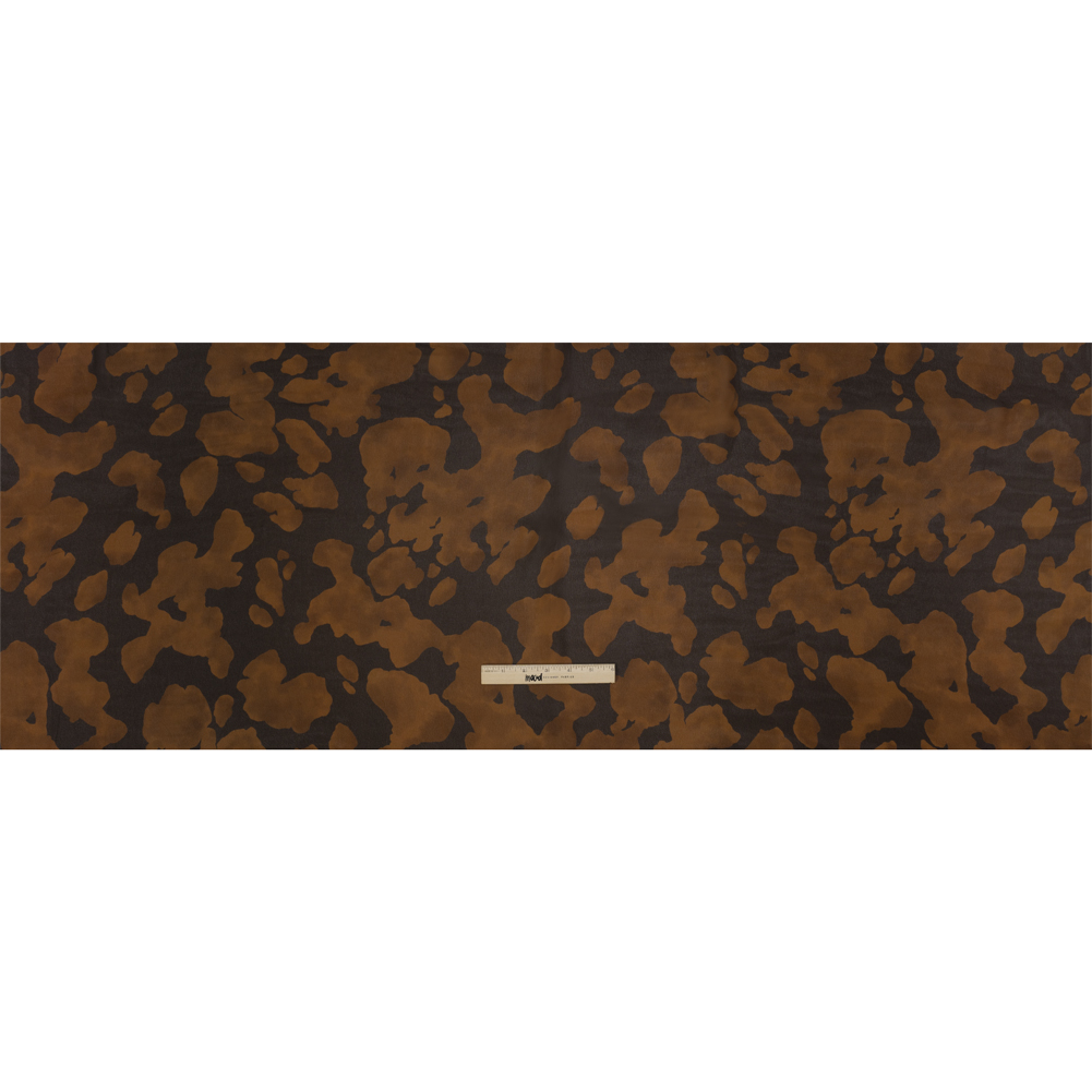 Reminiscent of a giraffe's coat, this Mood Exclusive Brown Clouded Kingdom Viscose Georgette invites you to stretch your sewing imagination! Brown spots congeal on a darker background, their cloudy appearances resembling the coloration of worn-in suede. With a dimensional face and a slight nod to an animal print, this viscose georgette delivers a subdued color palette that is not lacking in personality. Its billowing drape, grainy hand, and translucent nature soften silhouettes and create an elegant feel, making it a perfect choice for an overlay on an evening gown or a workplace skirt. Add a lining to create gathered peasant blouses with sheer puffed sleeves, and more!