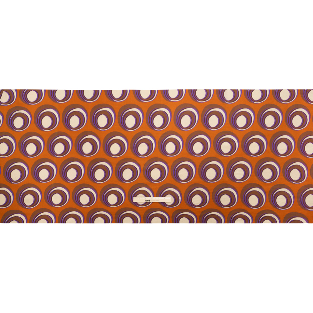 You can try to stop our dancin' feet but we just cannot stand still in this Mood Exclusive Brown Stop the Beat Rayon Challis! Brown, cream, and purple layered circles, like little worlds spinning ‘round and ‘round, dot a burnt orange background. The face boasts a modest shine to accompany the smooth hand, providing an overall look of understated elegance. Enjoy the warmth of the day in style with the lightweight drape—beautiful as a sundress, skirt, blouse, and more. A lining may be desired due to its semi-sheer nature!