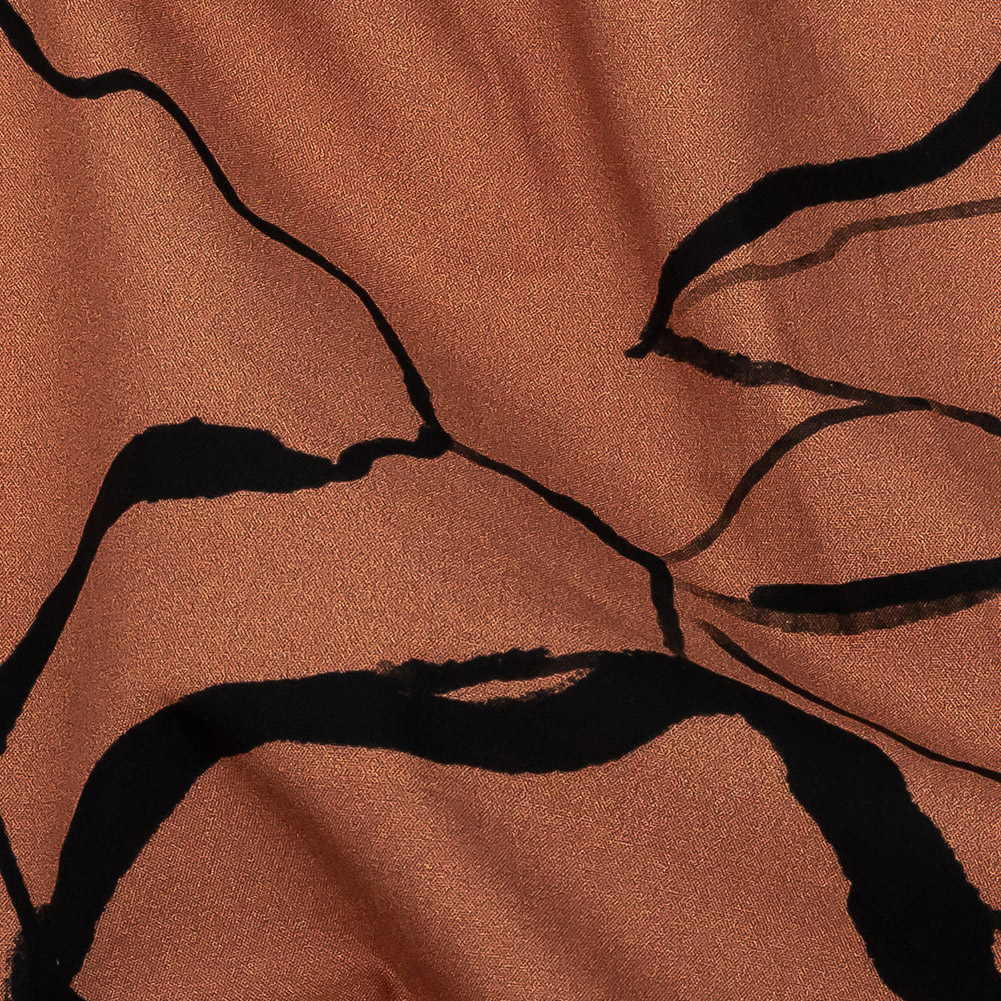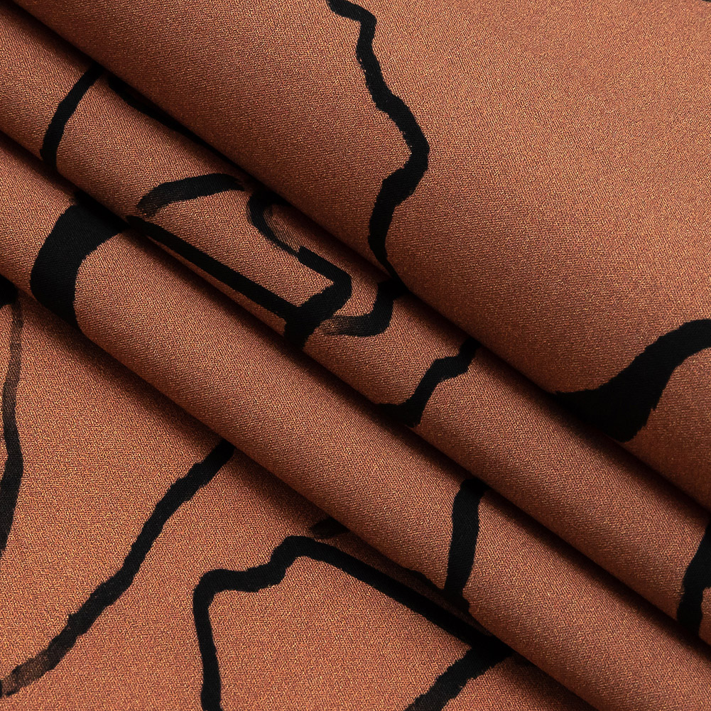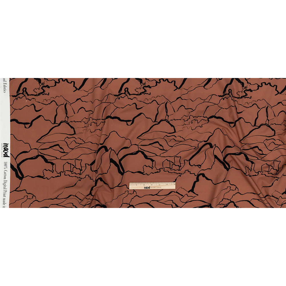 Breathe in the crisp mountain air with our Mood Exclusive Carmine Rose Mountain Brushstrokes Cotton Poplin. Set on a reddish-orange background, black brushstrokes of varying sizes and weights sweep across the poplin to create the illusion of rolling hilltops and towering mountain peaks. A smooth, crisp hand and a flexible drape join forces in perfect harmony, creating this lightweight cotton poplin with a slight mechanical give. Despite its slightly translucent nature, a lining is optional but not required, and, in actuality, this fabric is ideal for the warmer months. Consider using this poplin to craft structured summer dresses as well as breathable paneled shirts—whichever you choose, this pattern is sure to make any summertime outfit pop!