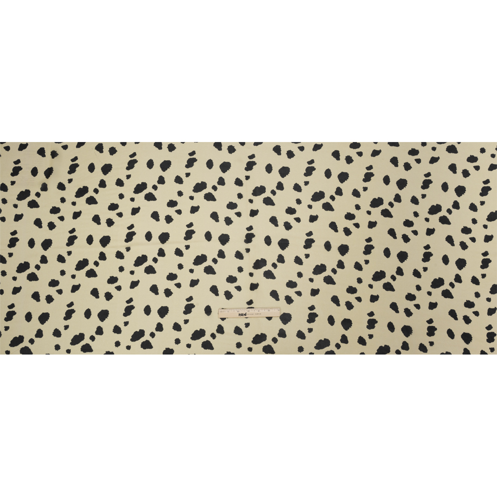 Trotting alongside a horse and carriage, the English Dalamtion keeps his nose high for any potential trouble hiding in the countryside. Like the coat of this dignified canine, our Mood Exclusive Coach Dog Trot Viscose Georgette displays black spots sporadically peppering a cream background. This viscose georgette has a billowing drape and a grainy, crisp hand. Its translucent nature softens silhouettes and creates an elegant feel, making it a perfect choice for an overlay on an evening gown or a workplace skirt. Add a lining to create gathered peasant blouses with sheer puffed sleeves, and more!