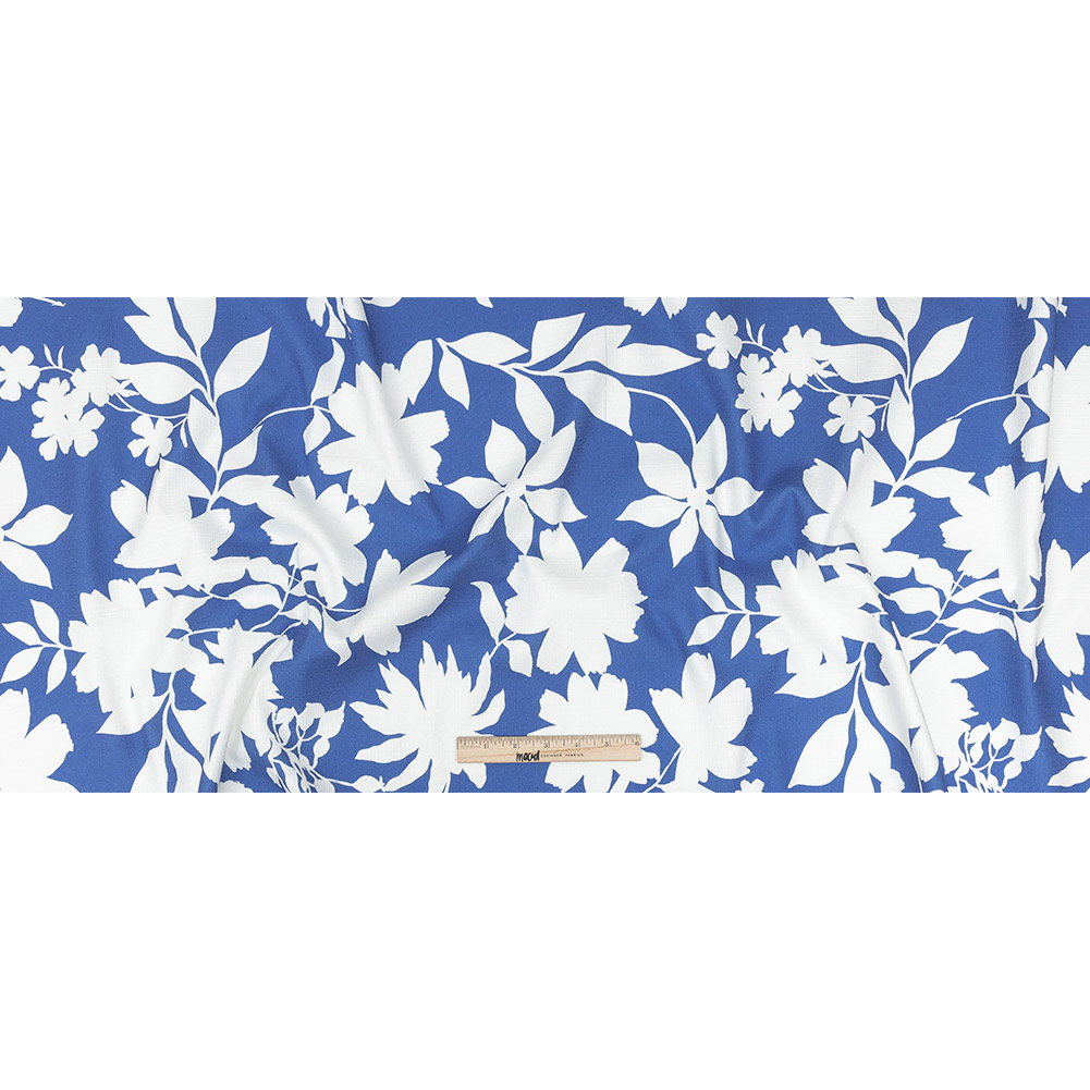The temptation of a vacation in warmer climes beckons from the face of our Mood Exclusive Cobalt Blue Sultry Silhouettes Stretch Cotton Woven! Berries and blooms burst among fresh foliage, all pale silhouettes on a ground of brilliant color that seems to radiate tropical heat.