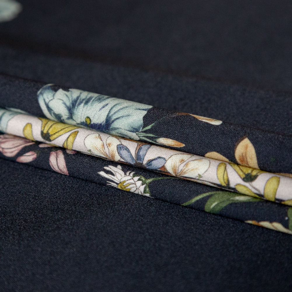You’ll be setting a gold standard with this Mood Exclusive Fall Flowerbeds Navy and Gamboge Stretch Cotton Sateen! Fall Flowerbeds encased by two square borders per panel are filled with a floral frenzy of Fall delights.