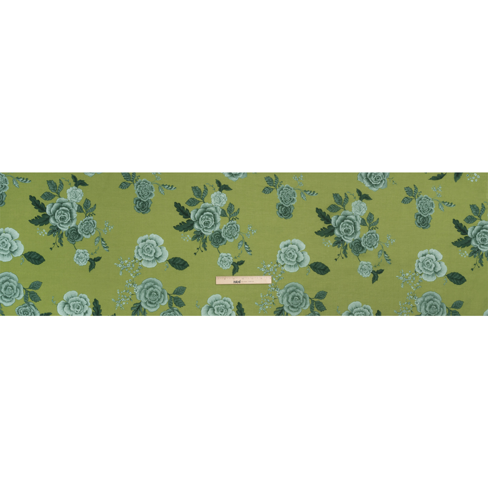 The gift of a green thumb blesses our Mood Exclusive Green Gardener’s Gift Cotton Voile with bountiful blue-toned flowers against a spring-green background.