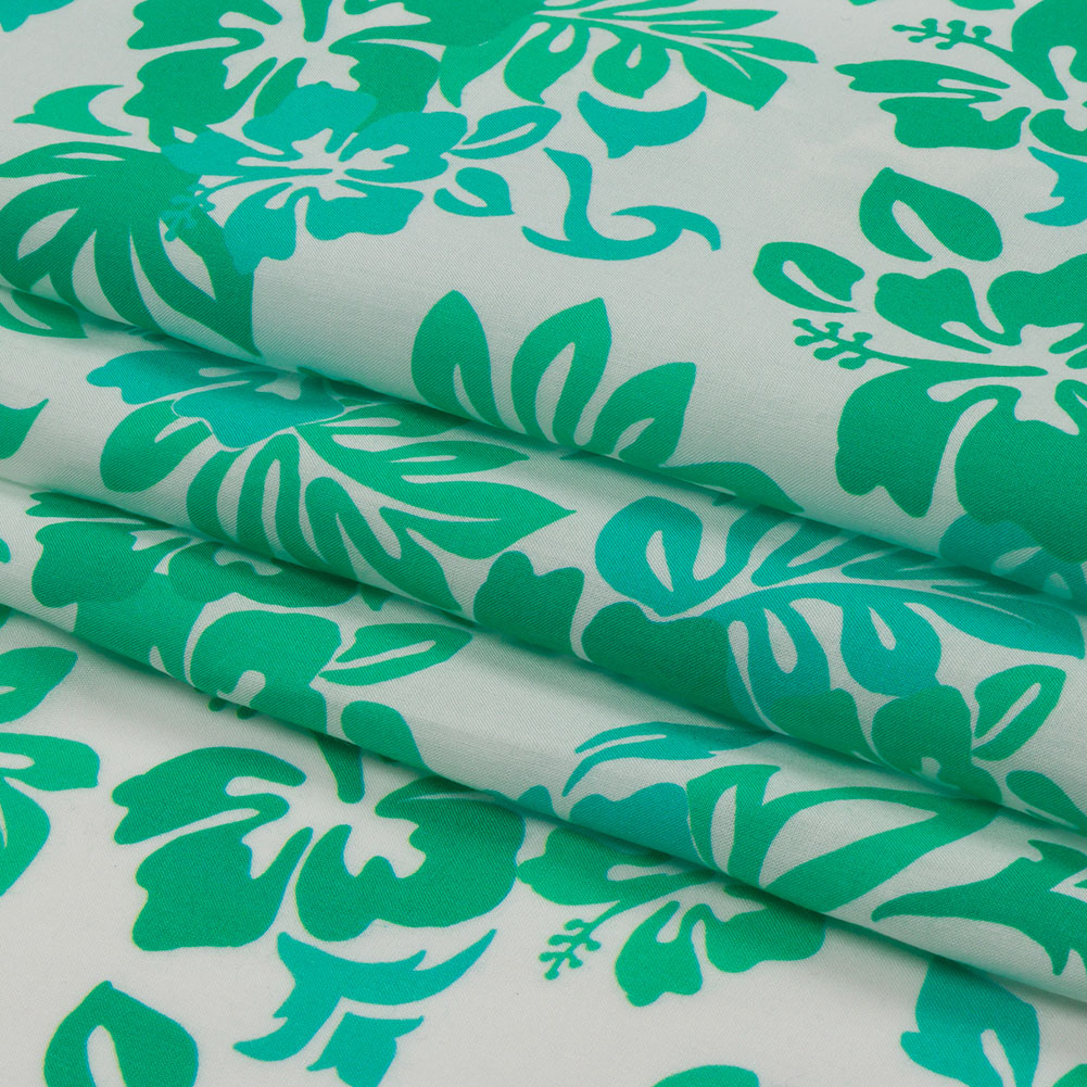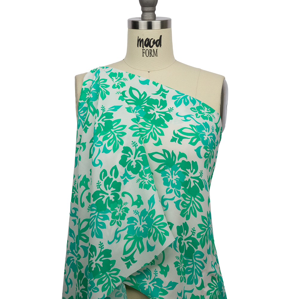 Greet the tropical sun with a little help from this Mood Exclusive Green Island Greeting Viscose Woven. Blue and green Hawaiian hibiscus flowers grow with lush foliage on a white ground. Soft and lightweight, this viscose woven is ideal for all levels of sewists, providing unmatched fluidity and an enviably smooth, comfy wear. Try lightweight dusters ideal for layering, billowing maxi dresses, or sweet, yet sensual crop tops. Slightly translucent, a lining may be added for additional structure but isn't needed.