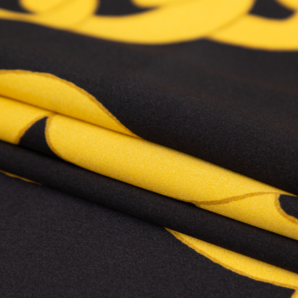 Well, orange you cute! Conjure up a gold medal for best print with our esteemed Italian Black and Gold Large Chains Digitally Printed Silk Charmeuse! Soft and smooth to the touch, this static printed fabric features chain links in various sizes of mimosa-orange intermingling with a black backdrop.