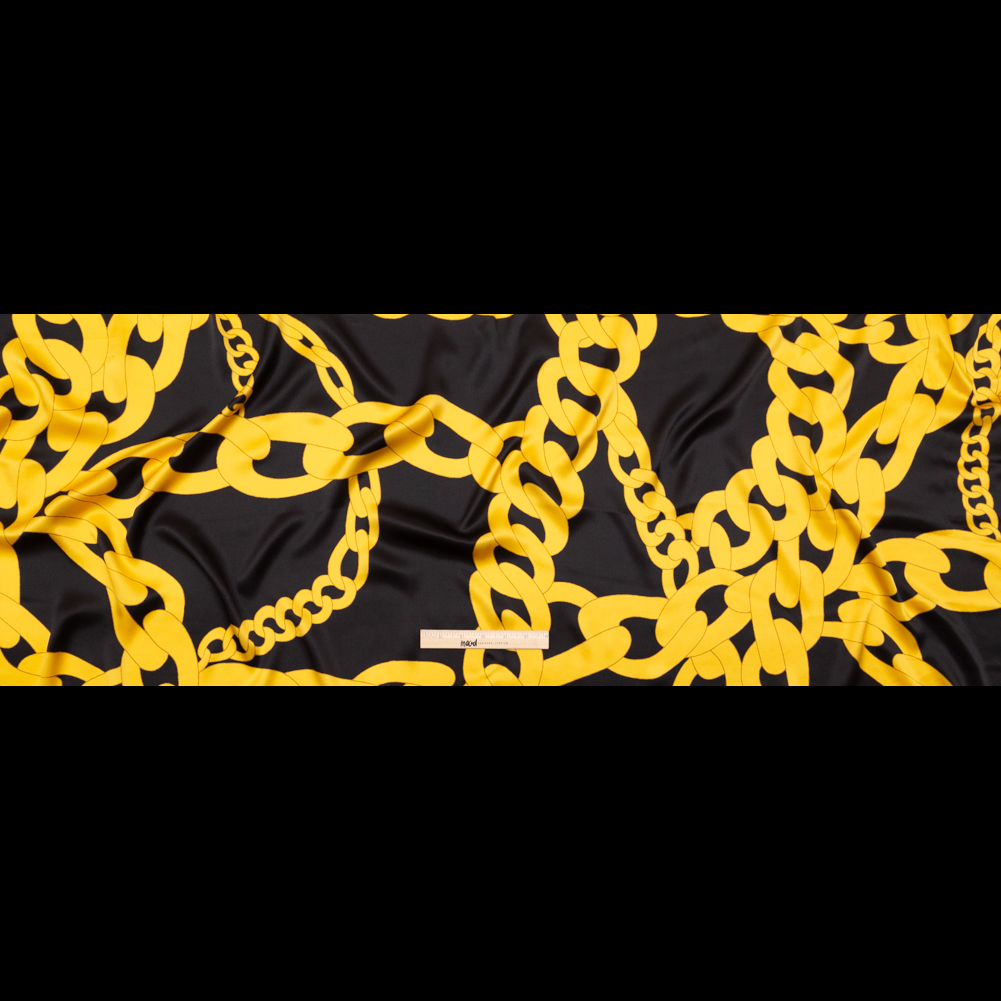 Mood Exclusive Italian Black and Gold Large Chains Digitally Printed Silk Charmeuse