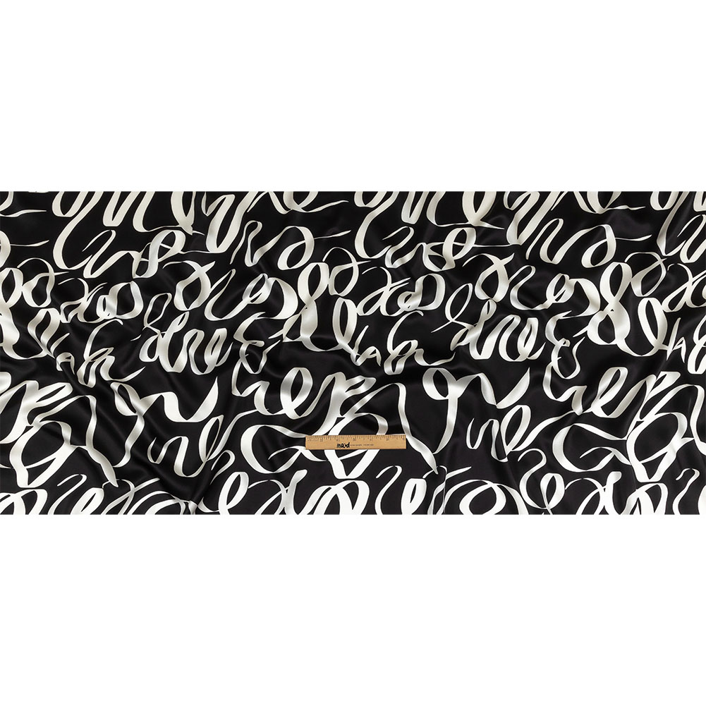 Mood Exclusive Italian Black Bean and White Calligraphic Squiggles Silk Charmeuse