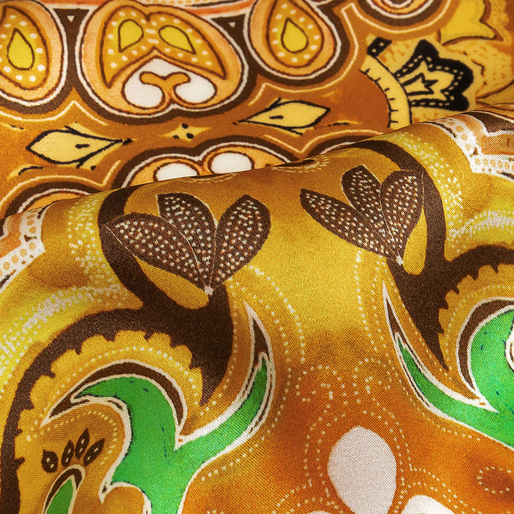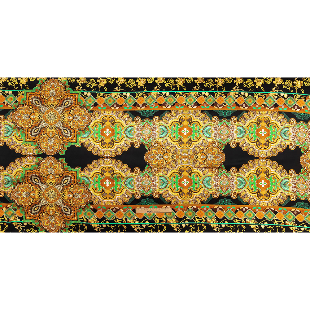 Mood Exclusive Italian Black, Gold and Green Floral Tile Silk Charmeuse