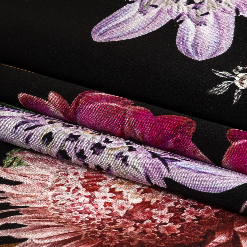Mood Exclusive Italian Black, Pink and Green Floral Silk Charmeuse