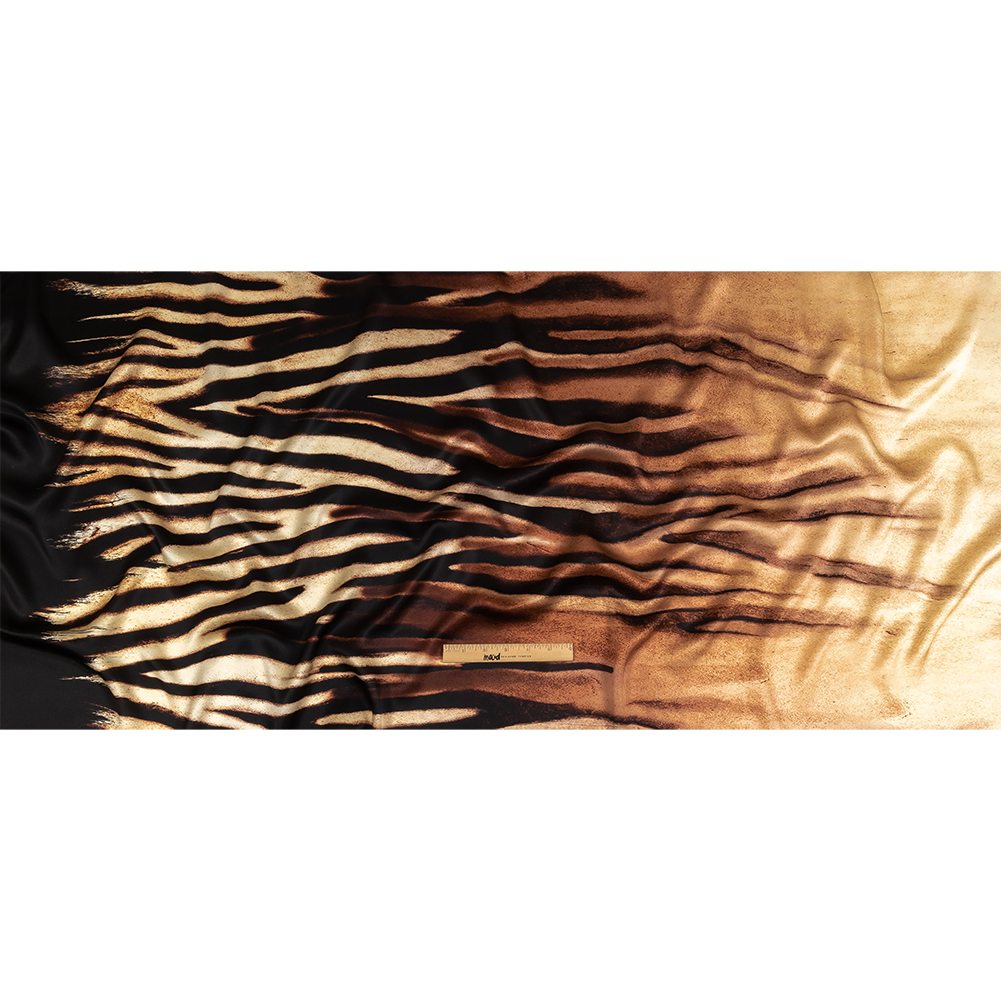 Mood Exclusive Italian Black, White and Brown Abstracted Zebra Border Printed Silk Charmeuse