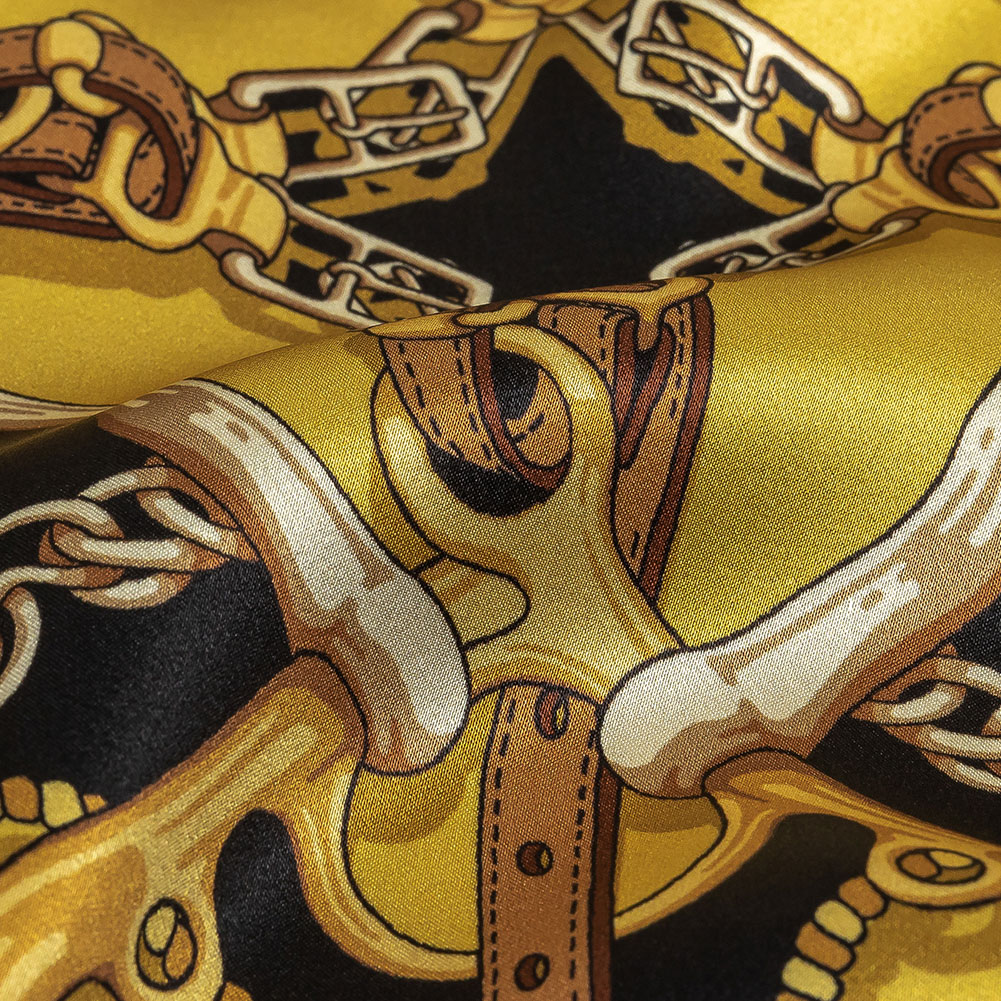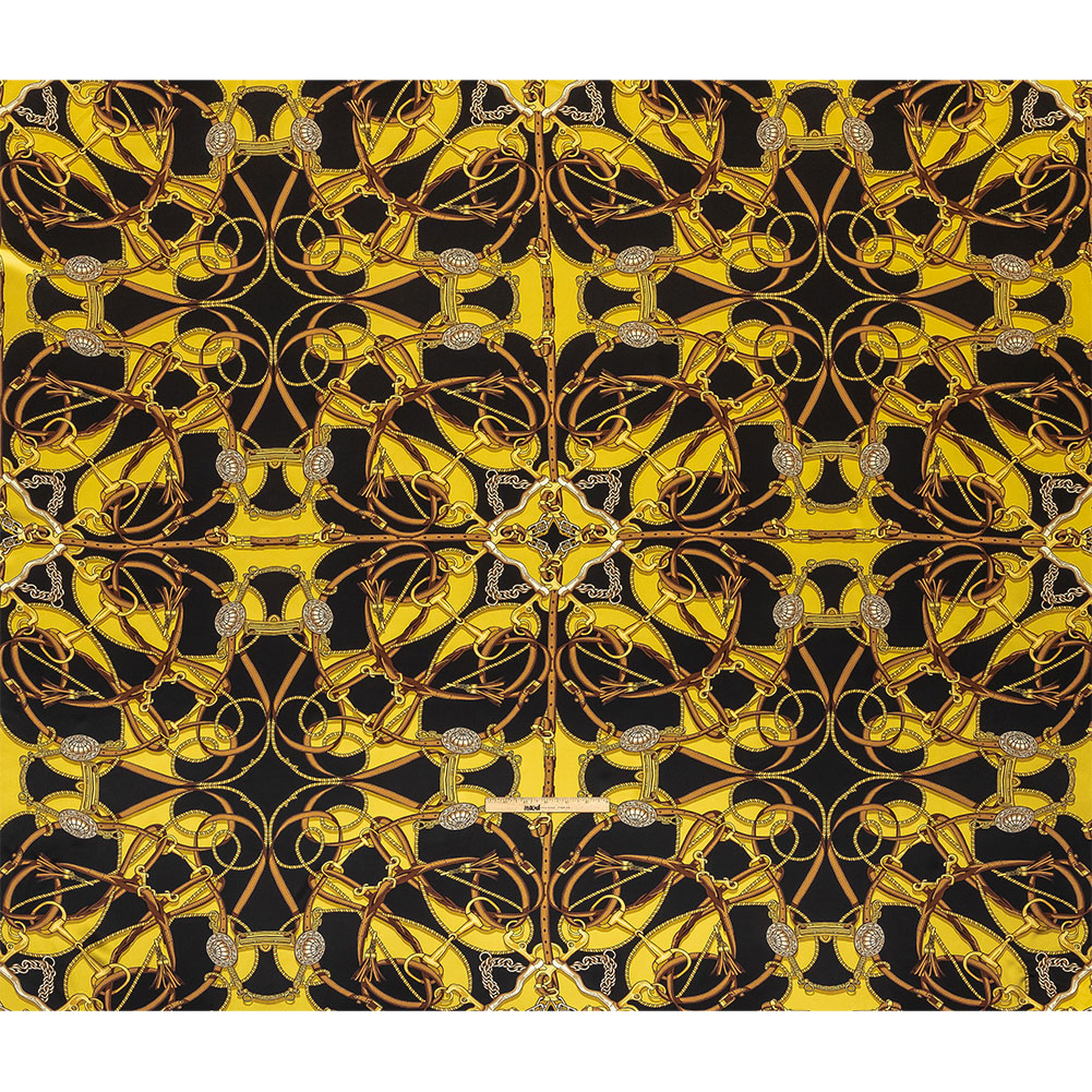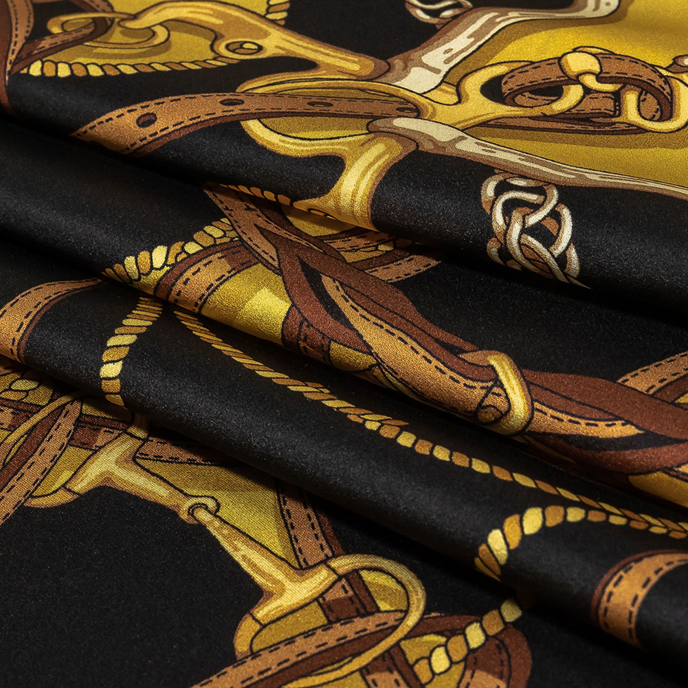 Mood Exclusive Italian Black, Yellow and Brown Bridles and Reins Silk Charmeuse Panel