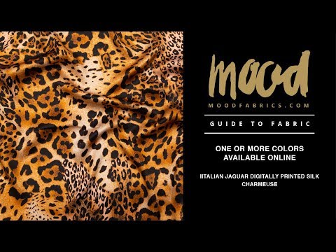 Ready, get set, go! Creative juices will certainly flow with our Italian Golden Brown Jaguar Digitally Printed Silk Charmeuse. Greeting us with a billowing drape and oh-so-lustrous surface, behind the scenes, this silky-smooth charmeuse has a matte backing that pales in comparison to its digitally printed facing. Exciting one's wild side, the stippling rendition of the watercolor-like composition presents the jaguar spots in a furry way. Altogether boasting a luxurious quality, this couture-worthy medium is well equipped for drapey silhouettes of few seams—and of a lighter weight, it brings countless options to the table. Opt for formal wear garments, loose blouses, full pants, lingerie, and more. Without stretch, it's best to include extra wearing ease in your designs, and strive for those that are loosely fitted. Also, consider layering up this fabric or incorporating a built-in slip to accommodate its translucent construction. We suggest sewing a slip dress with scalloped lace trim, or an over blouse with lightweight shank-back buttons. Try your hand at sewing french seams, or finish straight seams with zig-zag stitches or pinking shears to help prevent the fine yarns from unraveling.