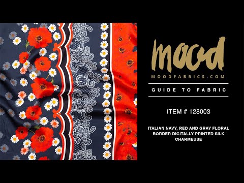A blend between nautical and patriotic, our Italian Navy, Red and Gray Floral Border Digitally Printed Silk Charmeuse steers proudly! Irresistibly soft, and silky smooth to the touch, this static printed fabric features a methodical arrangement: A strip of white, a band of blue, and a ladder of red run parallel to one selvage edge, headlining for the floral motifs, lace-like pattern, sequence of daisies, and clustered red flowers—with evenly spaced flowers continuing to the other selvage edge. No stretch? No problem! Silk has countless benefits, aside from a high luster; from great water absorption and its ability to resist flames to its fiber strength and anti-static properties. A fluid drape and lightweight bring this natural fiber full circle, making it suitable for high fashion usage. All around sumptuous, this couture-worthy medium is well equipped for drapey silhouettes of few seams—inviting copious amounts of options to the table! Opt for formal wear garments, loose blouses, full pants, hi-end lingerie, and more. Translucent in some areas, a lining would welcome true opacity.