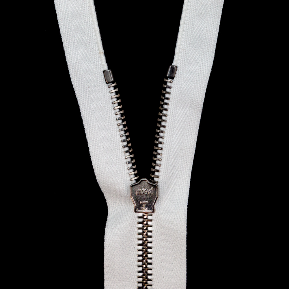 Mood Exclusive Italian Off-White and Gunmetal T5 Open End Metal Zipper - 27.5"