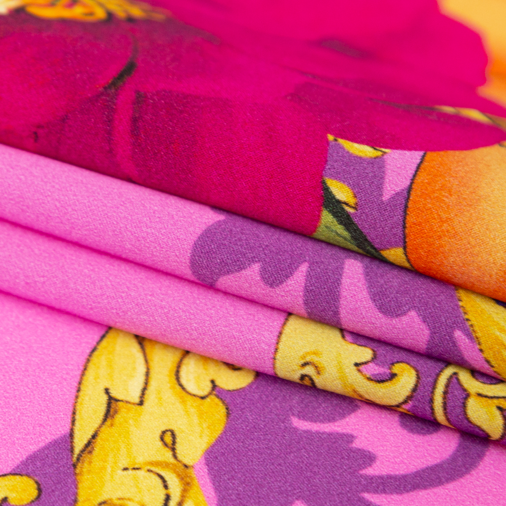Mood Exclusive Italian Pink and Gold Ornate Floral Digitally Printed Silk Charmeuse