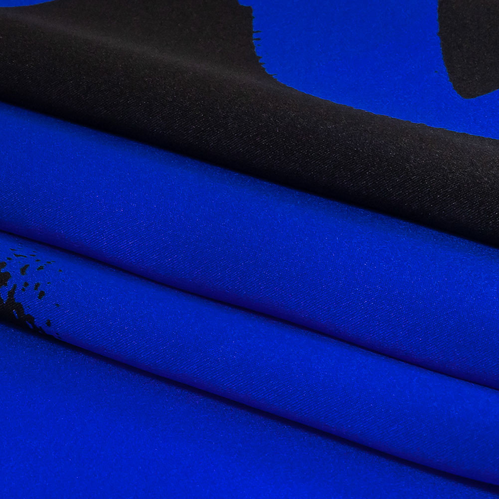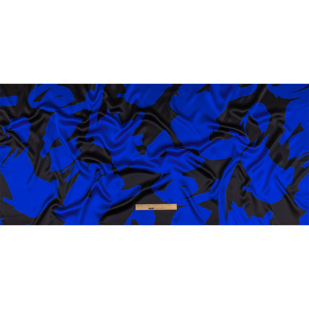 Mood Exclusive Italian Royal Blue and Black Brushstrokes Silk Charmeuse